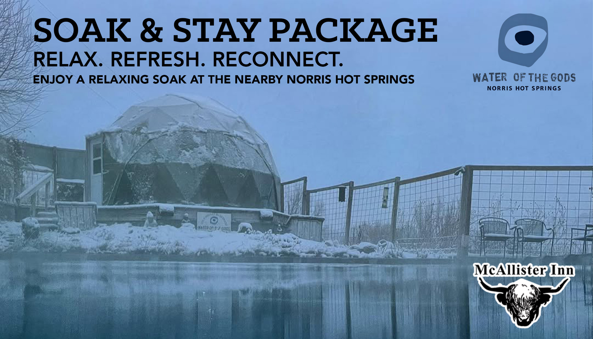 Relax, Refresh, and Reconnect with Our Soak & Stay Package Make your Montana escape truly unforgettable with our Soak & Stay offer at McAllister Inn. Pair your cozy accommodations with a soothing soak at Norris Hot Springs, just a short drive away.